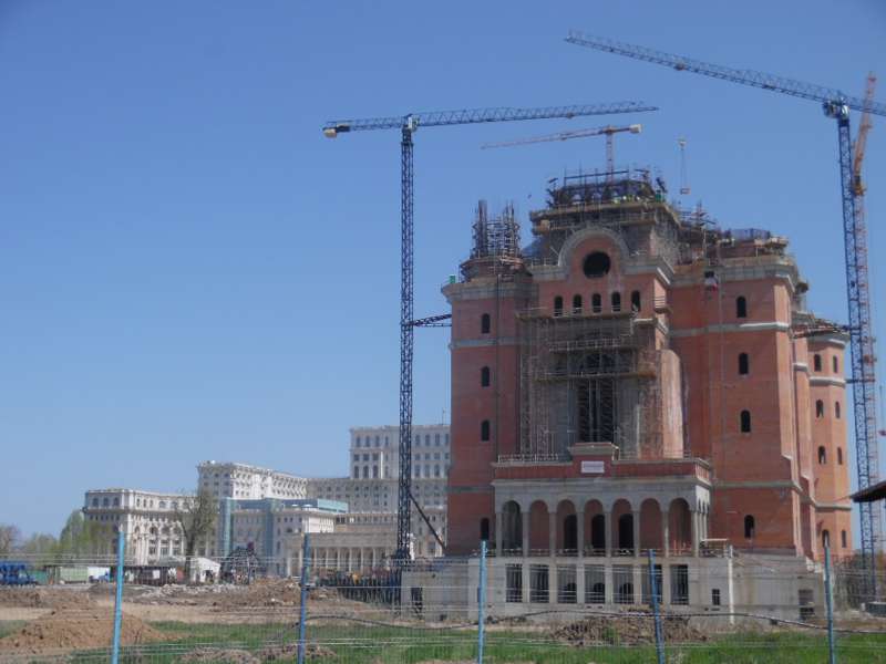 Fra i cantieri, uno su tutti domina la città, per l’imponenza dell’occupazione del suolo, ma ancor più per l’occupazione del dibattito pubblico. È il febbrile cantiere al lavoro giorno e notte per la costruzione della nuova cattedrale ortodossa, un’opera imponente che in altezza mira a superare San Pietro. Si vuole arrivare in tempo a completare almeno la costruzione dell’edificio (per gli interni e gli arredi c’è tempo, secondo le usanze locali) entro il 25 novembre, giorno previsto dell’inaugurazione alla quale parteciperà il patriarca ecumenico Bartolomeo.[1] Si sarebbe voluta la cerimonia di inaugurazione il giorno 30 novembre, festa di sant’Andrea, ma quel giorno Bartolomeo sarà occupato con la festa del medesimo santo nella sua Costantinopoli. Importante è che si possa inaugurare la più grande cattedrale dell’Ortodossia entro il 2018, (controverso) centenario dell’“unificazione” della Romania, a rimarcare l’identificazione voluta tra Chiesa ortodossa e nazione.