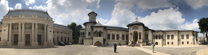 Le bandierine fiancheggiano ancora i vasti boulevard in stile parigino che attraversano l’irregolare geometria di Bucarest, a ricordare la recente visita di papa Francesco in terra romena. Le strade laterali sono un enorme parcheggio sempre pieno. Le vetture, in questa città che è la capitale oltre che la sede del capitale, sono di classe medio alta. Poche biciclette, molti monopattini elettrici a noleggio, nessuno scooter. Sempre numerosi i cantieri all’opera.