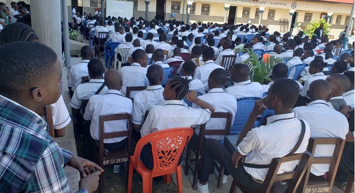 Detto questo, le presentazioni sul cambiamento climatico sono state tenute dagli alunni del Collège Saint Jean, guidati dagli insegnanti di Biologia e Chimica – Alexis Wembo e Samba Laurent. Anche un genitore specializzato in questioni ecologiche ha partecipato alla conferenza parlando di ecologia agli alunni del Collège Saint Jean.