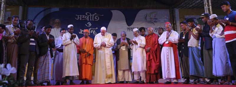 E venendo al concreto del Bangladesh, Papa Francesco ha avuto parole di apprezzamento per quanto si sta facendo. «Le diverse comunità religiose del Bangladesh hanno abbracciato questa strada in modo particolare nell’impegno per la cura della terra, nostra casa comune, e nella risposta ai disastri naturali che hanno afflitto la nazione negli ultimi anni. (…) Uno spirito di apertura, accettazione e cooperazione tra i credenti non solo contribuisce a una cultura di armonia e di pace; esso ne è il cuore pulsante. Quanto ha bisogno il mondo di questo cuore che batte con forza, per contrastare il virus della corruzione politica, le ideologie religiose distruttive, la tentazione di chiudere gli occhi di fronte alle necessità dei poveri, dei rifugiati, delle minoranze perseguitate e dei più vulnerabili! Quanta apertura è necessaria per accogliere le persone del nostro mondo, specialmente i giovani, che a volte si sentono soli e sconcertati nel ricercare il senso della vita!».